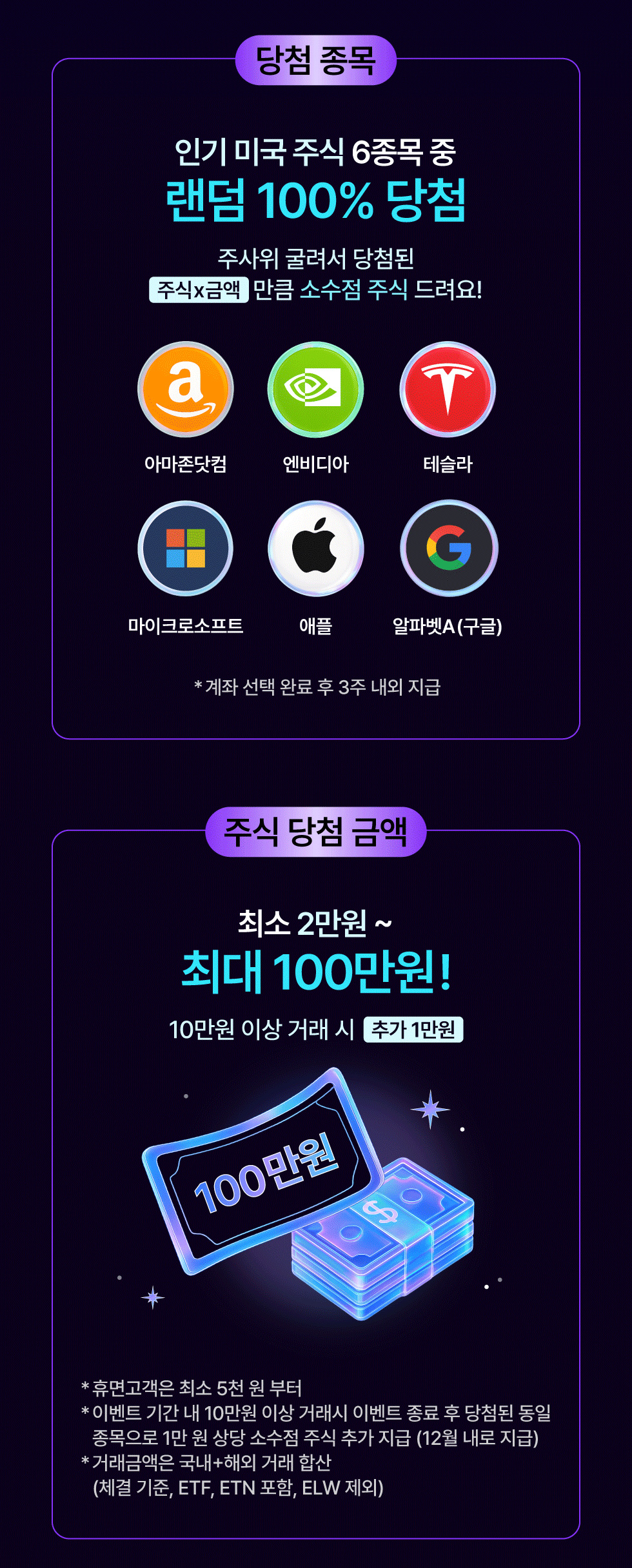 이벤트 기간 중 10만원 이상 거래시 당첨된 동일 종목으로 1만원 추가 지급합니다.