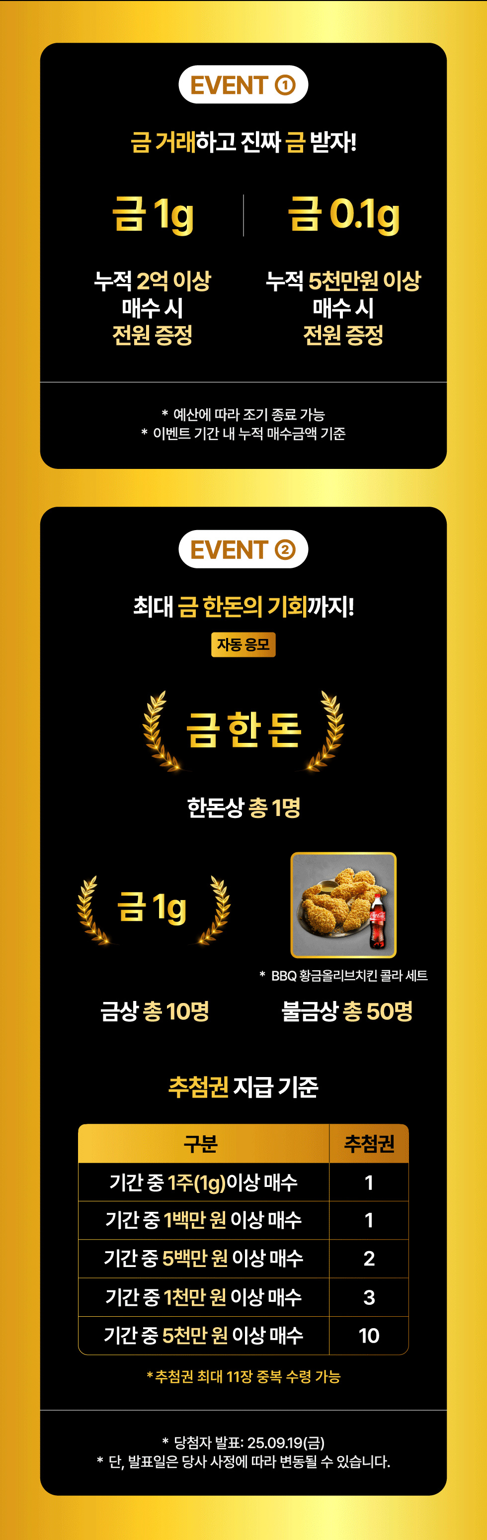 금 실물 경품은 유선 및 문자로 개별 연락 후 발송 예정이며, 자세한 사항은 당첨자에게 개별 공지 드릴 예정입니다.